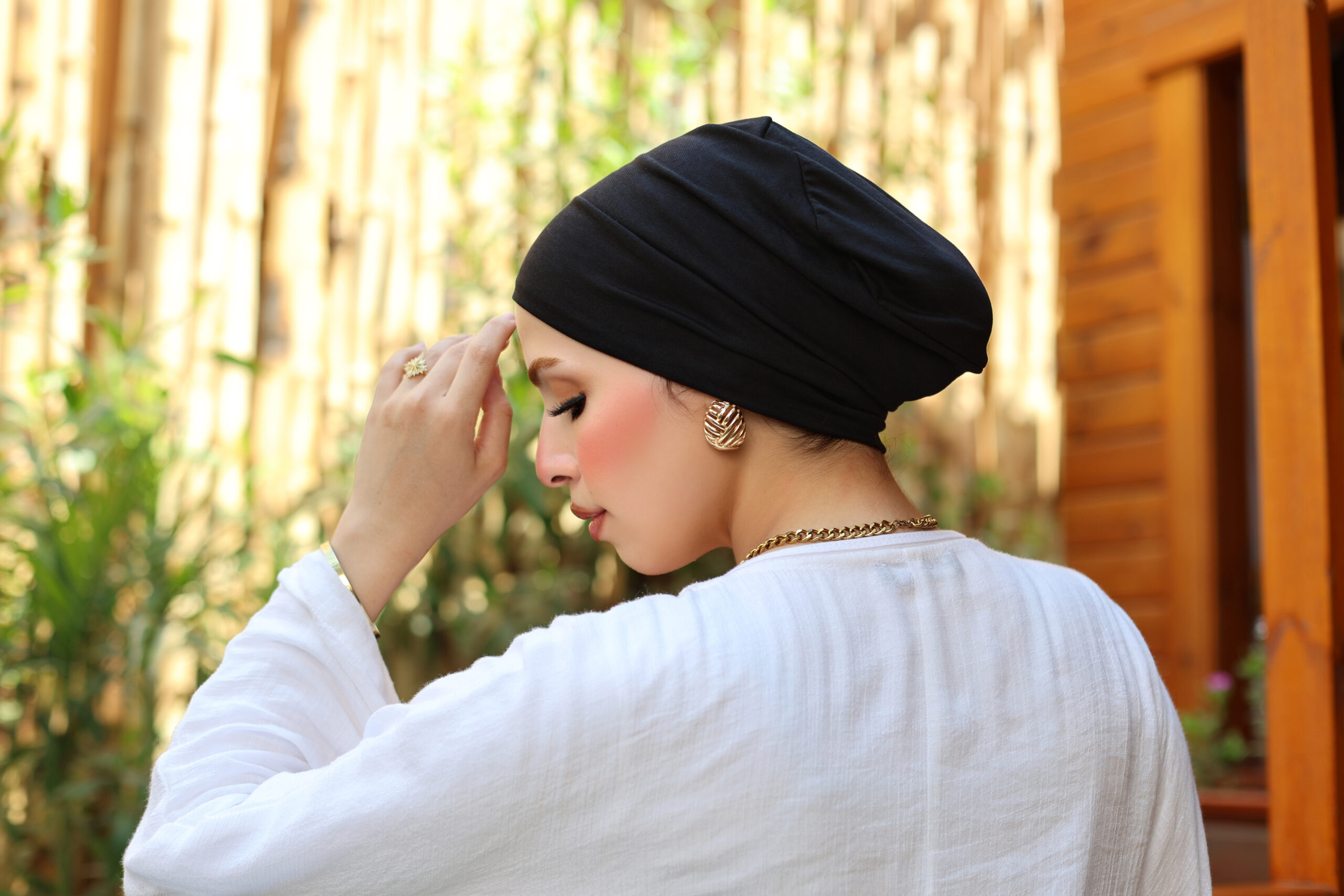 The No-Sew Syrian Bandana in Black is perfect for women who value clean lines and modern comfort. The soft cotton fabric fits gently while providing full coverage, ideal for both everyday and formal wear.