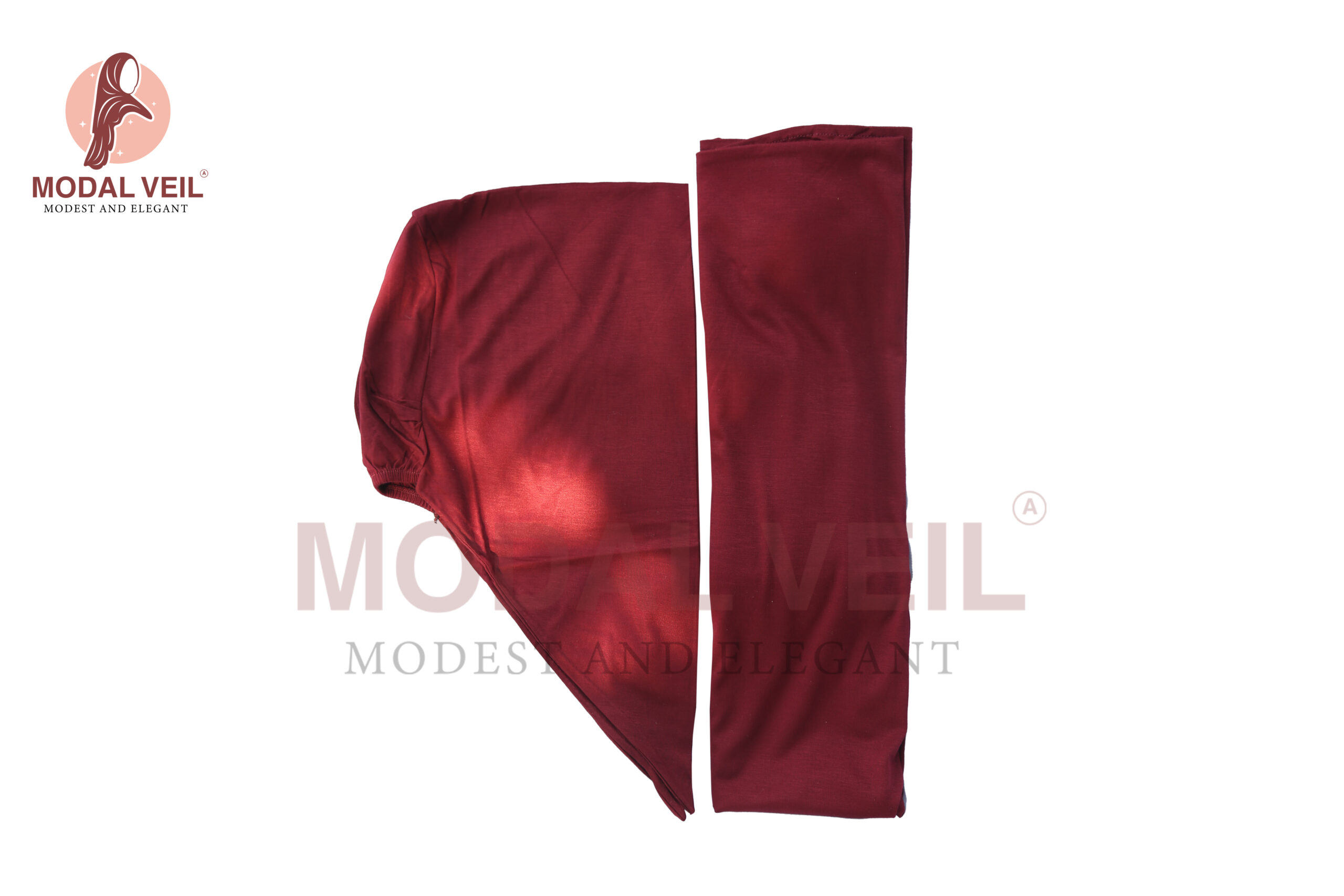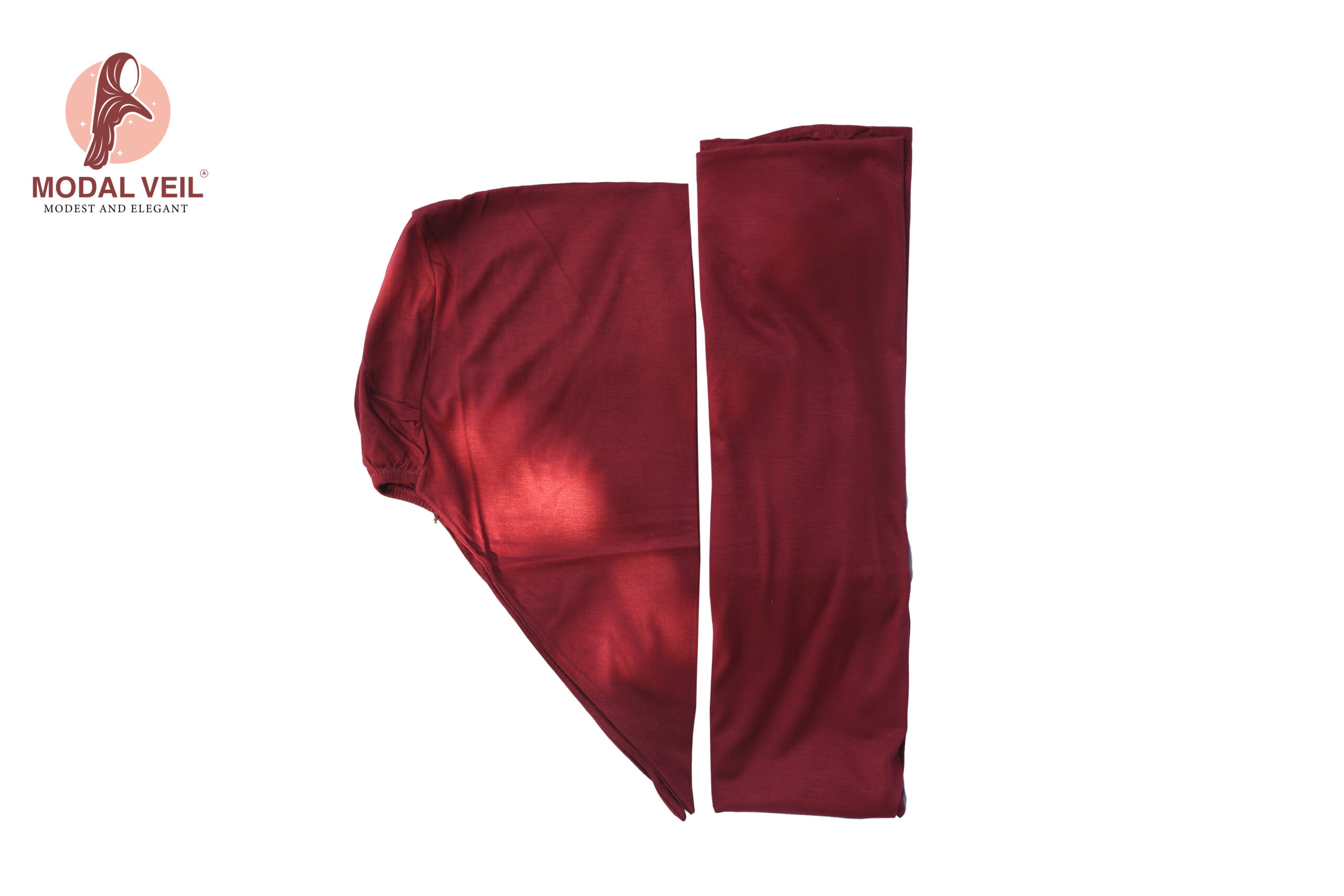 The Joury Burgundy veil set redefines effortless modesty. Made from premium cotton lycra, it blends comfort and style, offering a smooth fit and breathable texture for all-day wear. Designed as a two-piece set with a coordinating bandana, it ensures perfect coverage with a graceful finish.