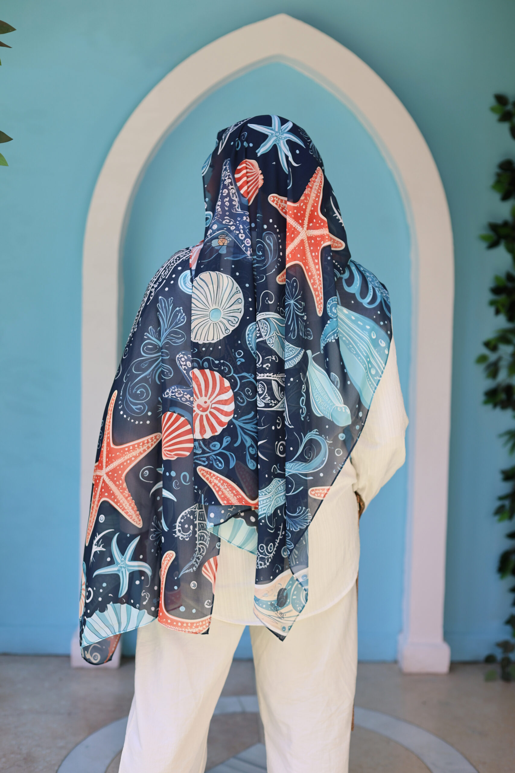 Crafted from premium printed chiffon, the Sea Star veil is a lightweight and versatile accessory perfect for both casual outings and special occasions. Its soft texture and elegant drape make it a must-have for your collection.